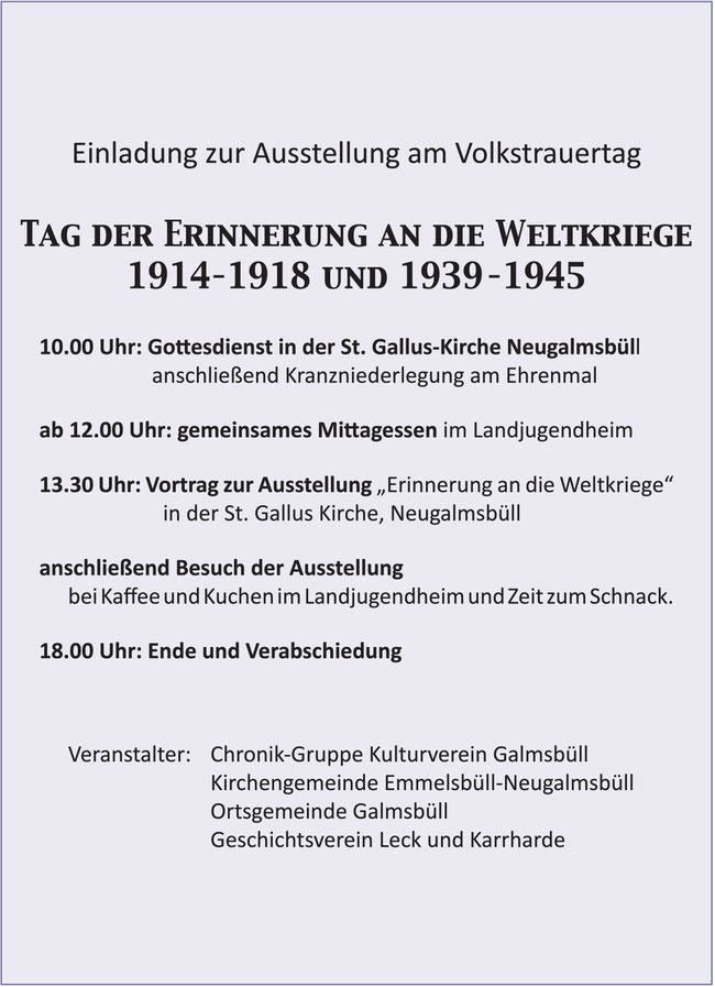 * Kümmerin Simone Palzer und viele andere im DRK (0151 59499879, 0170 8992515, kuemmerin.galmsbuell@gmx.de) besorgt Medikamente, legt im nächsten Quartal eure KV-Karte beim Arzt vor, kümmert sich um persönliches, schnackt mit euch über euren Gartenzaun, ...)